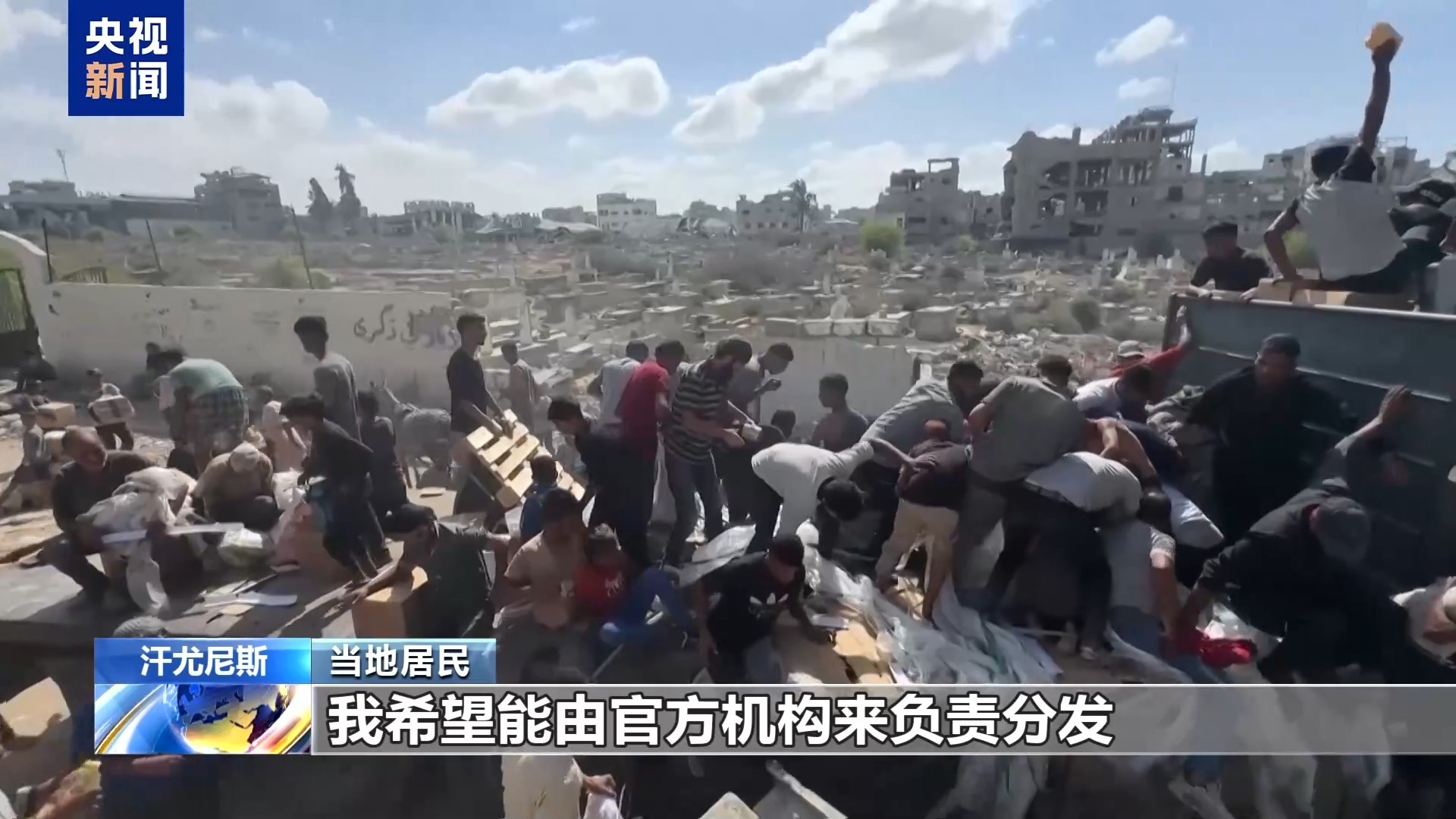 11日,在汗尤尼斯的街道上,数千人跑向满载救援物资的卡车,为自己和家人领取必需品。当地居民表示,许多人无法收到物资,因为物资有限,而且没有官方机构负责分发物资。他们呼吁联合国机构等公共机构承担起分发物资的责任。