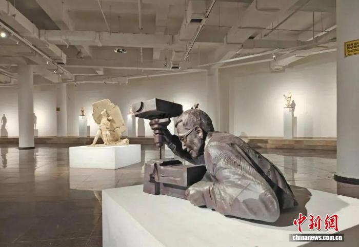 中国新闻服务清道在7月24日,“手工艺雕塑和梦想建筑的展览:新时代的工艺问题”最近在青岛雕塑博物馆开放。