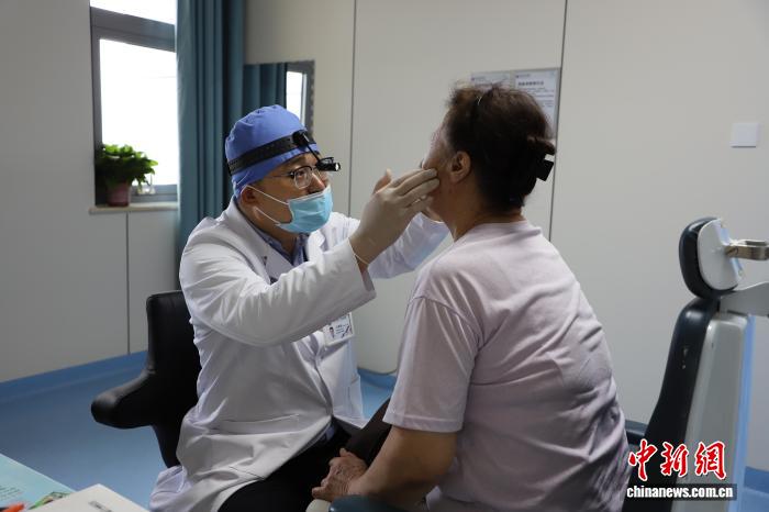 这张照片显示了Wang Boqian向患者解释预防措施。中国新闻服务记者张·林胡(Zhang Linhu)的照片