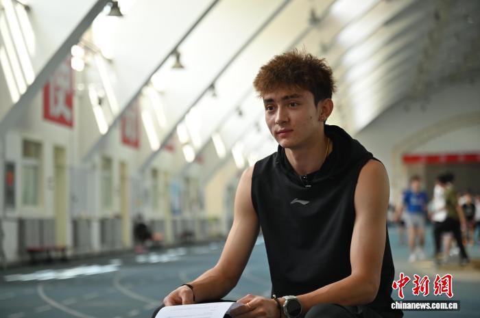 6月5日,新疆短跑选手Ailsil Wumier在北京体育大学接受了采访。照片:中国新闻社报道的杨成昌